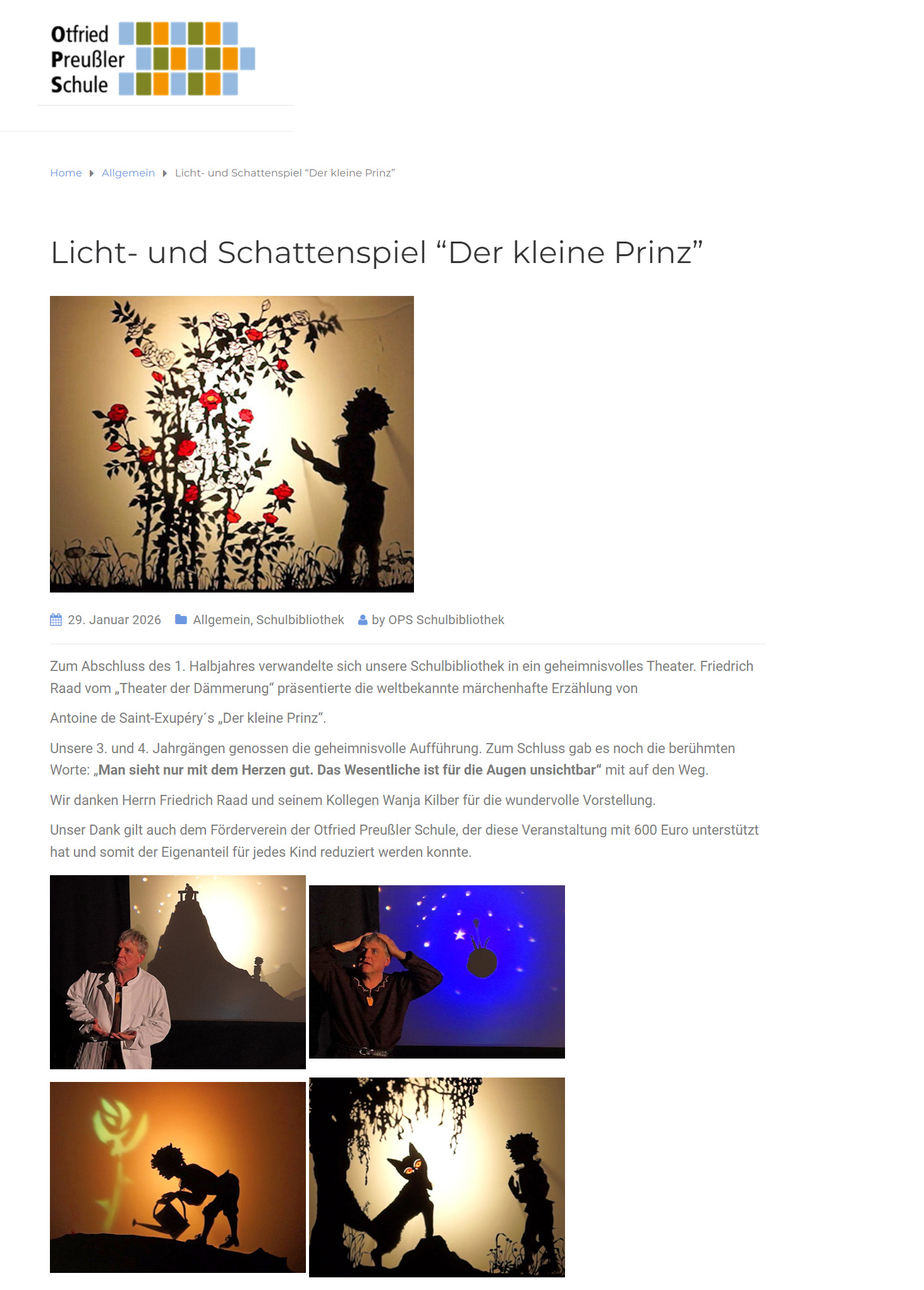 Internetpräsenz der Otfried Preußler Schule Bad Soden vom 29. Januar 2026