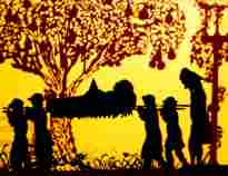 Herr von Ribbeck auf Ribbeck im Havelland Mit dem Vorurteil, daß die Alten geizig und die Jungen großzügig seien, räumt Theodor Fontane so ganz nebenbei auf. Der alte Ribbeck, der die Kinder liebt, ist auch heute noch Vorbild für Herzensgüte und Weisheit des Alters. Den Geiz seines Sohnes überlistet der alte Herr von Ribbeck kurz vor seinem Tod durch seinen Wunsch eine Birne mit ins Grab gelegt zu bekommen. So wächst aus seinem Grab ein neuer Birnbaum, an dessen saftigen Früchten sich die Kinder und auch die Erwachsenen laben können Gespielt mit 14 Figuren und unzähligen Birnen. |