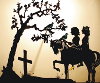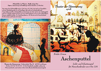 ... die guten ins Töpfchen, die schlechten ins Kröpfchen... Bäumchen, rüttel dich und schüttel dich, wirf Gold und Silber über mich... rucke di guh, rucke di guh, Blut ist im Schuh. Der Schuh ist zu klein, die rechte Braut sitzt noch daheim... Wer kennt sie nicht, die drei geflügelten Worte aus dem Märchenklassiker Aschenputtel? Das Theater der Dämmerung erzählt Aschenputtel im Originaltext der Brüder Grimm mit zwei Ausnahmen:. Damit's nicht zu lange wird, wurden aus drei Festabenden im Ballsaal des Königsschlosses zwei und die Bestrafung der bösen Stiefschwestern am Ende des Märchens haben wir abgemildert. So werden in unserer Schattenspiel-Aufführung den Stiefschwestern von den Tauben nicht die Augen ausgepickt (das muß wirklich nicht gezeigt werden und ist gewiß auch symbolisch gemeint: wer so böse ist, läuft blind durchs Leben), sondern sie werden in unserer Fassung einfach schwarz vor Ärger. Aschenputtel ist eine schöne junge Frau: sie lebt aus ihrem Herzen und ist mit ihrer Mutter im Himmel verbunden; sie erträgt ihr Schicksal mit einem heiligen Ja, ohne je die Hoffnung und das Vertrauen ins Leben aufzugeben; sie liebt obwohl sie gehaßt wird; sie ist arm, vertraut aber ihrem persönlichen Reichtum; sie weint und hat keine Scheu es zu zeigen. Es geht um das Schwach-Sein-Dürfen eines jeden Menschen, um die Selbst-Annahme. Im Kampf darum, immer die Beste zu sein, degradieren sich Aschenputtels eitle Stiefschwestern selbst zu berechenbaren und funktionierenden Hüllen. Nicht der äußere Erfolg, nicht die Schlauheit seine wahre Persönlichkeit zu verstecken, erlösen Aschenputtel, sondern die Annahme der gegebenen Situation und seiner selbst. Ein verlorener Schuh ist Aschenputtel der Schlüssel zum Glück. Der König des Landes veranstaltet für seinen Sohn ein Fest, zu dem alle Jungfrauen des Landes eingeladen werden. Eine von ihnen soll er zu seiner Braut erwählen. Alle dürfen zum Fest kommen. Nur Aschenputtel nicht. Ihr fehlen die passenden Schuhe und Kleider zum Tanz. Die schweren Holzschuhe und sein Aschenkittel machen es zum Gespött der eitlen Stiefschwestern. Auch die Stiefmutter will mit allen Mitteln Aschenputtel daran hindern, der Einladung zu folgen. Doch am Grab der Mutter wird Aschenputtel unerwartet Hilfe zuteil. Für einige Stunden wirde es mit goldenen Pantoffeln und einem prunkvollen Kleid beschenkt. Schön wie eine Königstochter erscheint es auf dem Fest. Und der Königssohn tanzt mit ihr allein. Bald muß Aschenputtel fliehen. Beim ersten Abend versteckt sie sich in einem Birnbaum. Dort verliert der Königssohn, der ihr hinterhergeeilt ist, ihre Spur. Am nächsten Abend verliert Aschenputtel auf ihrer Flucht einen ihrer goldenen Pantoffeln (Der Königssohn hatte ja die Treppe mit Pech bestreichen lassen). Mit diesem Schuh geht der er am anderen Tag auf die Suche nach der geliebten Unbekannten. Das Mädchen, dem der zierliche Schuh paßt, soll seine Frau werden. Aschenputtels Stiefschwestern versuchen den Prinzen zu täuschen. Doch die Schuhprobe bringt es an den Tag: In ihrer Eitelkeit und Habgier haben die Schwestern auf zu großem Fuß gelebt. Nur Aschenputtel, das der Königssohn schließlich doch entdeckt, hat den richtigen Fuß für den goldenen Schuh. Darin erkennt er die wahre Braut. In wenigen Märchen stehen sich äußerer und innerer Reichtum des Menschen so kontrastreich gegenüber. Bescheidenheit, Demut, Mut und Hoffnung Aschenputtels treffen auf Eitelkeit, Gier, Spott und Hinterlist der beiden Stiefschwestern. Doch dank der Unnachgiebigkeit des Prinzen kann sich die wahre Liebe entfalten. Neid, Haß und Hinterlist verschwinden im Dunkel.