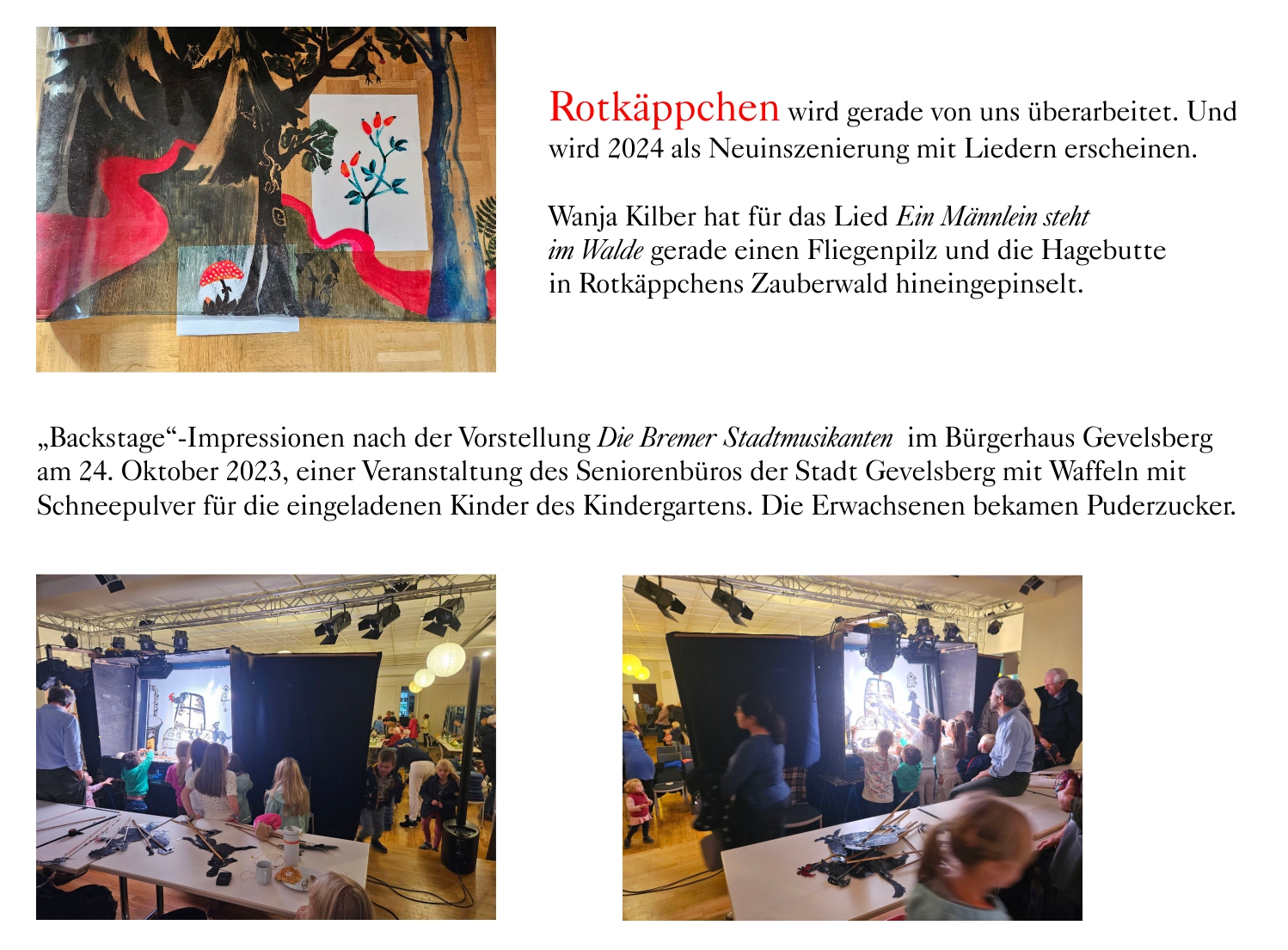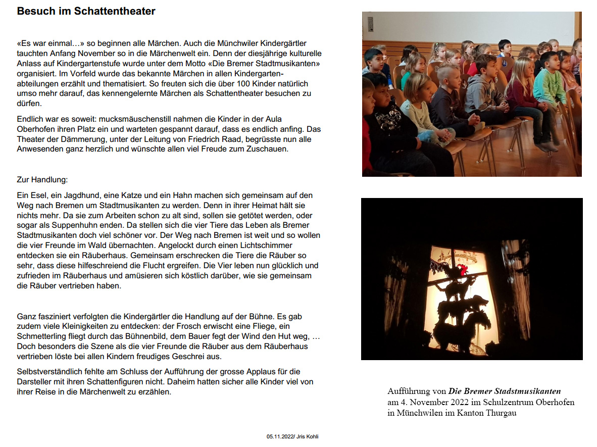 Hallo Herr Raad, Rückmeldung einer Grundschule in Rheinland-Pfalz, für die wir am 25. und 26. März 2021 4 Livestreams durchgeführt haben, jeweils Aschenputtel für die Klassen 1 und 2 und Däumelinchen für die Klassen 3 und 4 im Wechselunterricht. Anschließend gab es schöne Frage- und Figurenzeigen-Runden über das Portal Big Blue Button.