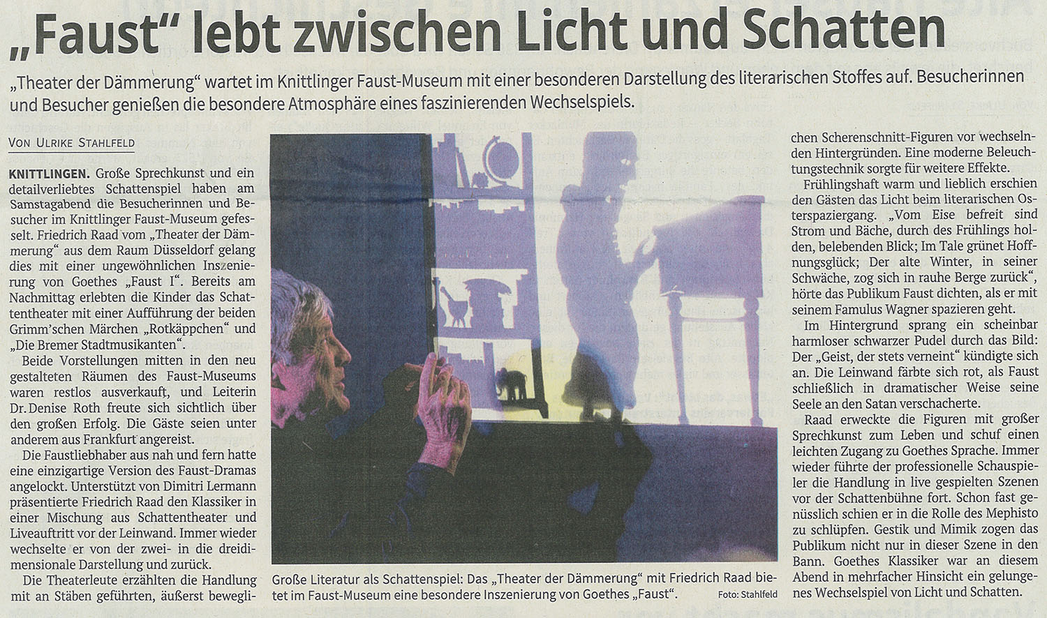 Aufführung von Der Teufel mit den 3 goldenen Haaren für die Schülerinnen und Schüler der Klassen 3 bis 6 der Schwarzwälder Bote vom 14.Dez. 2018