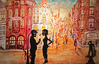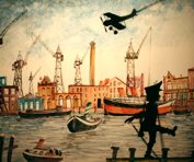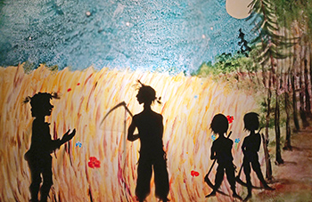 1,12m hoch, sind auf einer 20m langen Rolle mit Glasmalfarbe aufgemalt.
