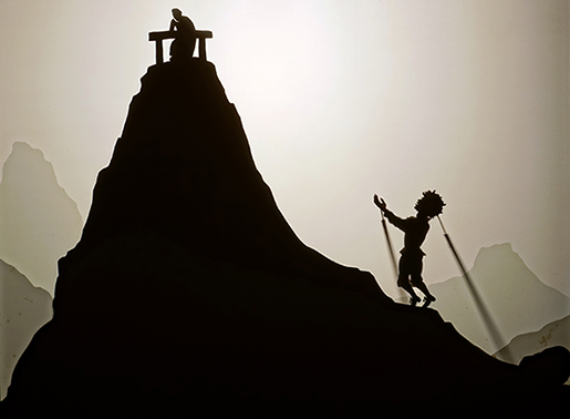 Licht- und Schattenspiel mit beweglichen Scherenschnittfiguren für bis zu 300 Zuschauer